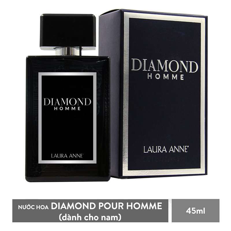 - Nước Hoa Nam Laura Anne Diamond Homme: Nước hoa khởi đầu với hương thơm đầy đam mê của cam Bergamot và bưởi, hòa quyện cùng với hương tươi mát của lá bạc hà, mang đến sự mát lạnh đầy sảng khoái.