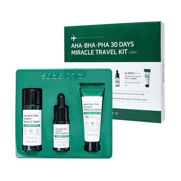 SOME BY MI là thương hiệu đến từ Hàn Quốc, chuyên sản xuất các sản phẩm làm đẹp thiết thực nhưng vẫn hợp thời trang. Các sản phẩm của hãng được chiết xuất từ các thành phần thiên nhiên, kể cả các sản phẩm chăm sóc da đến các sản phẩm trang điểm. Nổi tiếng nhất phải kể đến là Nước Hoa Hồng Cho Da Mụn Miracle Toner AHA- BHA-PHA 30 Days đã nhận được "cơn mưa lời khen" từ cộng đồng làm đẹp nhờ khả năng làm giảm mụn và mang lại làn da mịn màng, khỏe mạnh chỉ trong 30 ngày sử dụng đều đặn. Tiếp nối thành công, SOME BY MI tiếp tục cho ra đời các sản phẩm cùng dòng AHA- BHA-PHA 30 Days để hoàn thiện quy trình chăm sóc cho làn da mụn, nhạy cảm. Và để giúp khách hàng có được sự trải nghiệm trước khi sử dụng toàn bộ dòng sản phẩm chăm sóc da mụn, cũng như tiện lợi hơn khi cần dưỡng da trong lúc đi du lịch hay công tác, SOME BY MI đã cho ra mắt Bộ Sản Phẩm Chăm Sóc Da Mụn 3 Món Some By Mi AHA-BHA-PHA 30 Days Travel Kit với dung tích mini size nhỏ gọn. Bộ sản phẩm bao gồm 3 món: