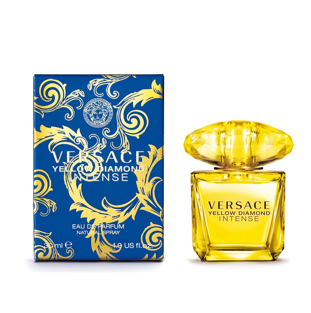 Hãng thời trang cao cấp Versace được thành lập bởi Gianni Versace. Hãng nước hoa Versace hiện có hơn 50 chai nước hoa tính đến thời điểm hiện tại. Trong đó hương thơm mới đến từ ngôi nhà Versace mang tên Yellow Diamond Intense. Được giới thiệu vào mùa hè 2014 là phiên bản nâng cấp từ Yellow Diamond vào năm 2011. Hương chủ đạo là hoa tươi, "tươi sáng và ánh sáng", "bí ẩn và quyến rủ".